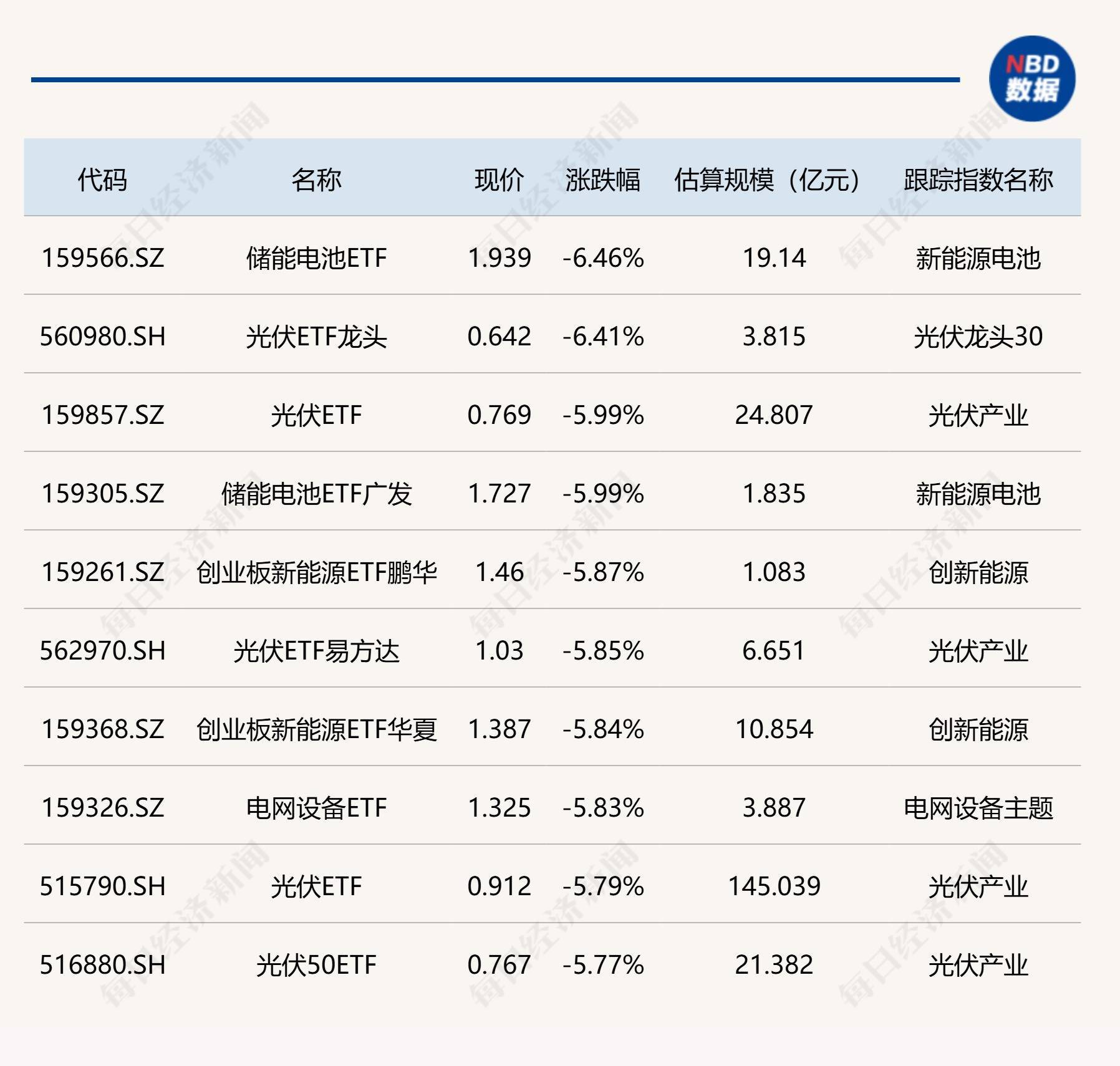 下跌方面,储能电池ETF、光伏ETF龙头跌超6%。